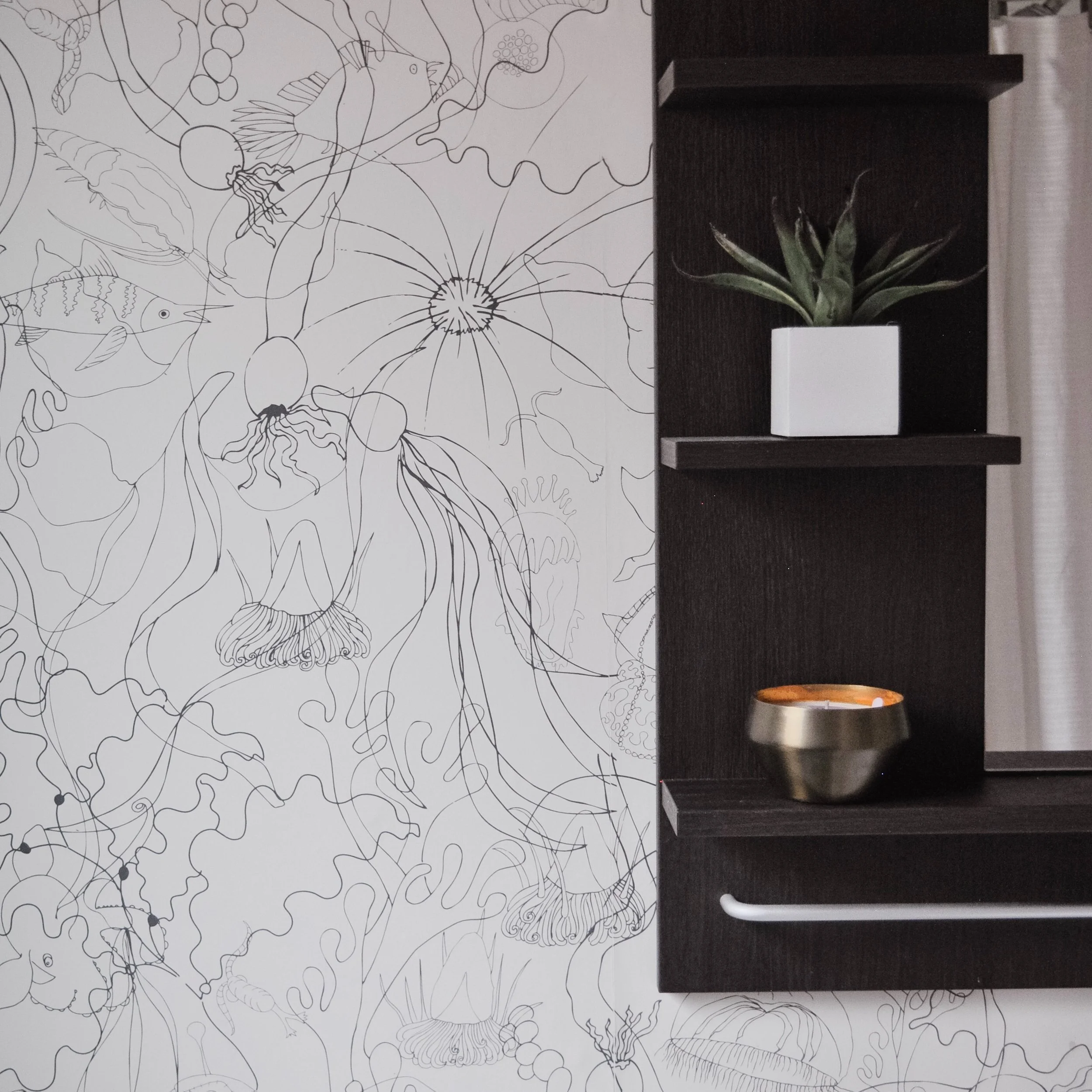 Removable wall coverings and decals are popular right now too. It’s great for rentals, if you’re a bit of a commitment phobe or you don’t want a full wall of wallpaper. They aren’t as malleable as a paper based wallpaper which means there is little room for error in getting it to line up. The decal style could be a good option in that situation.