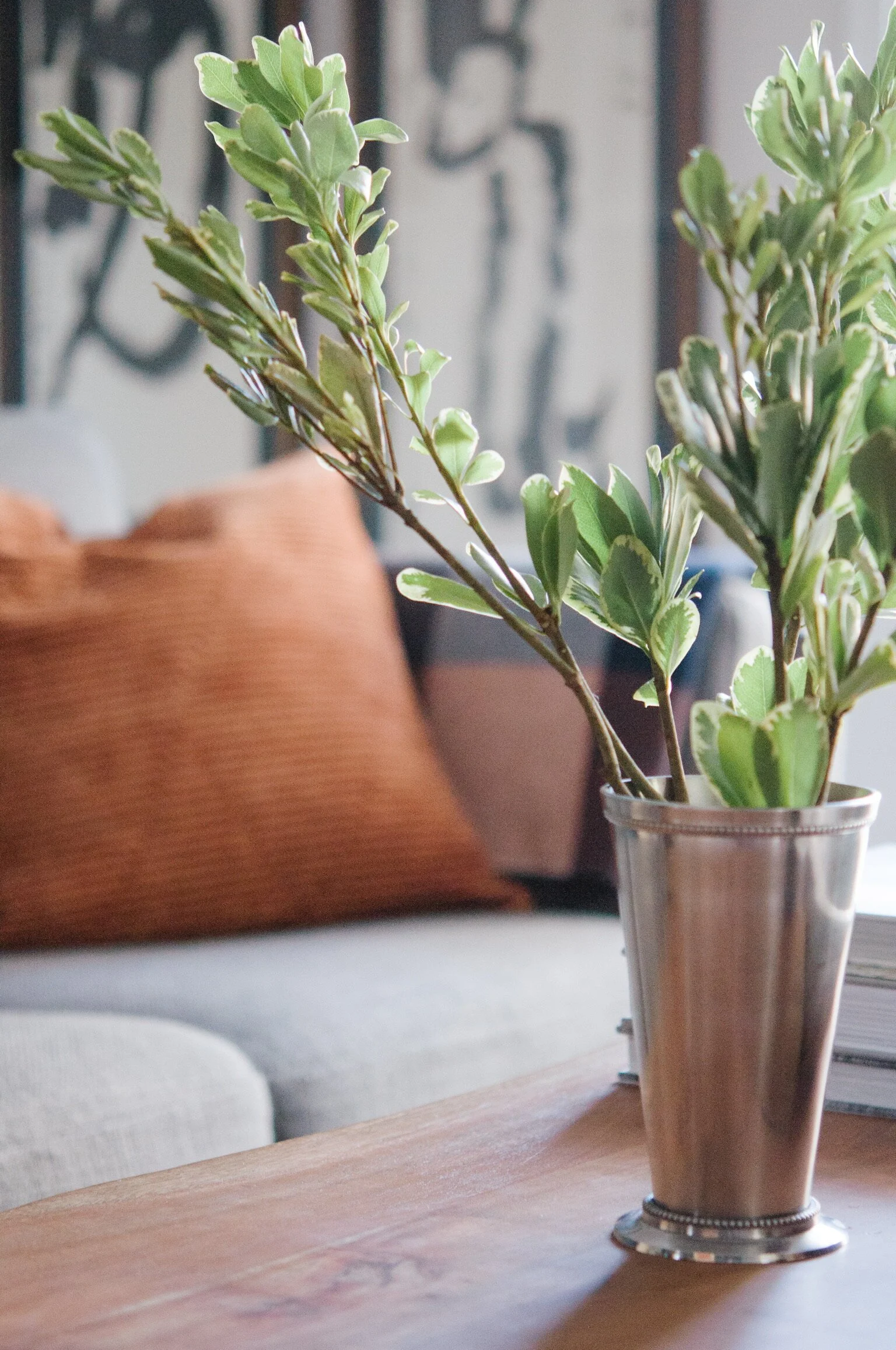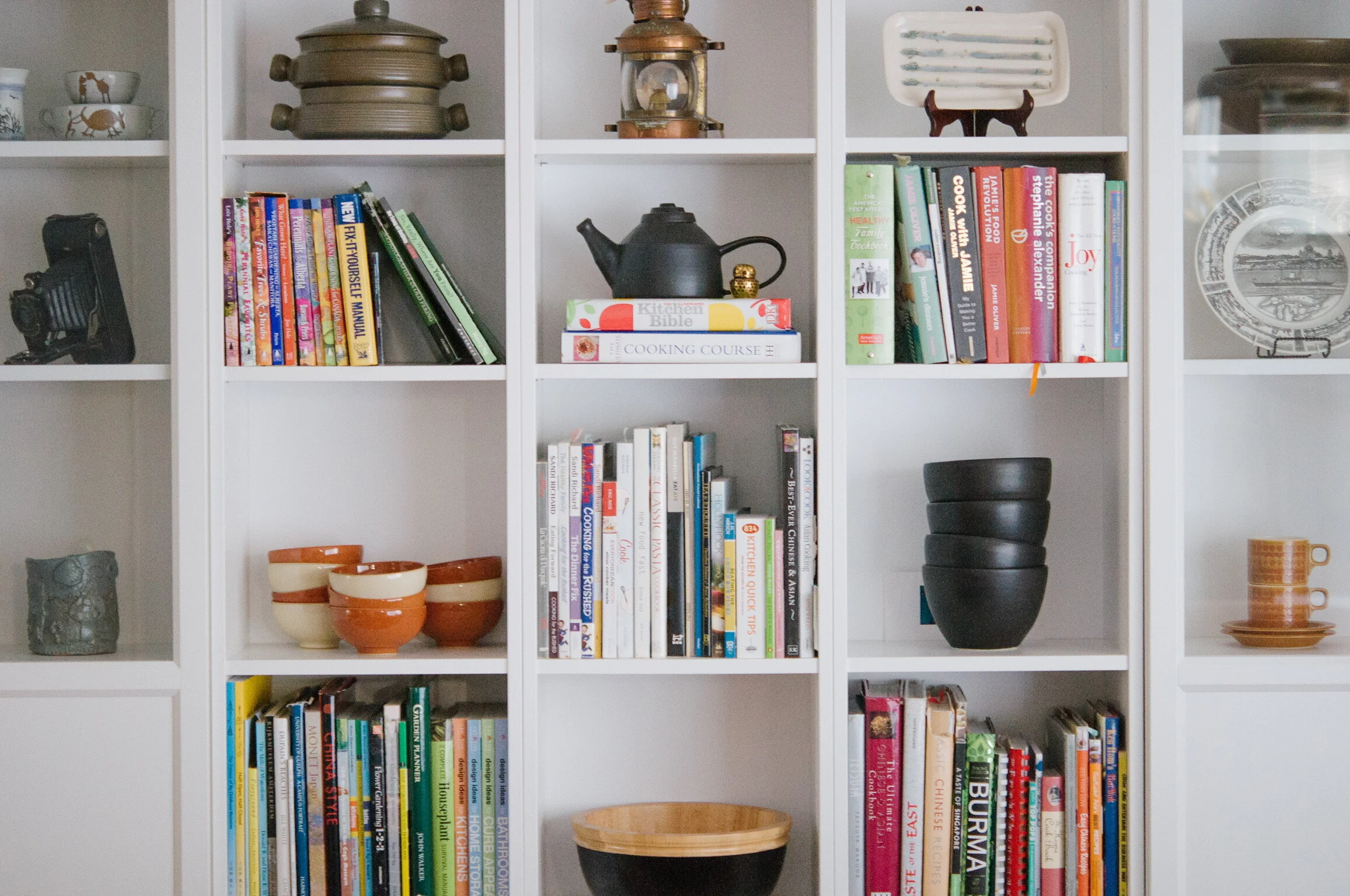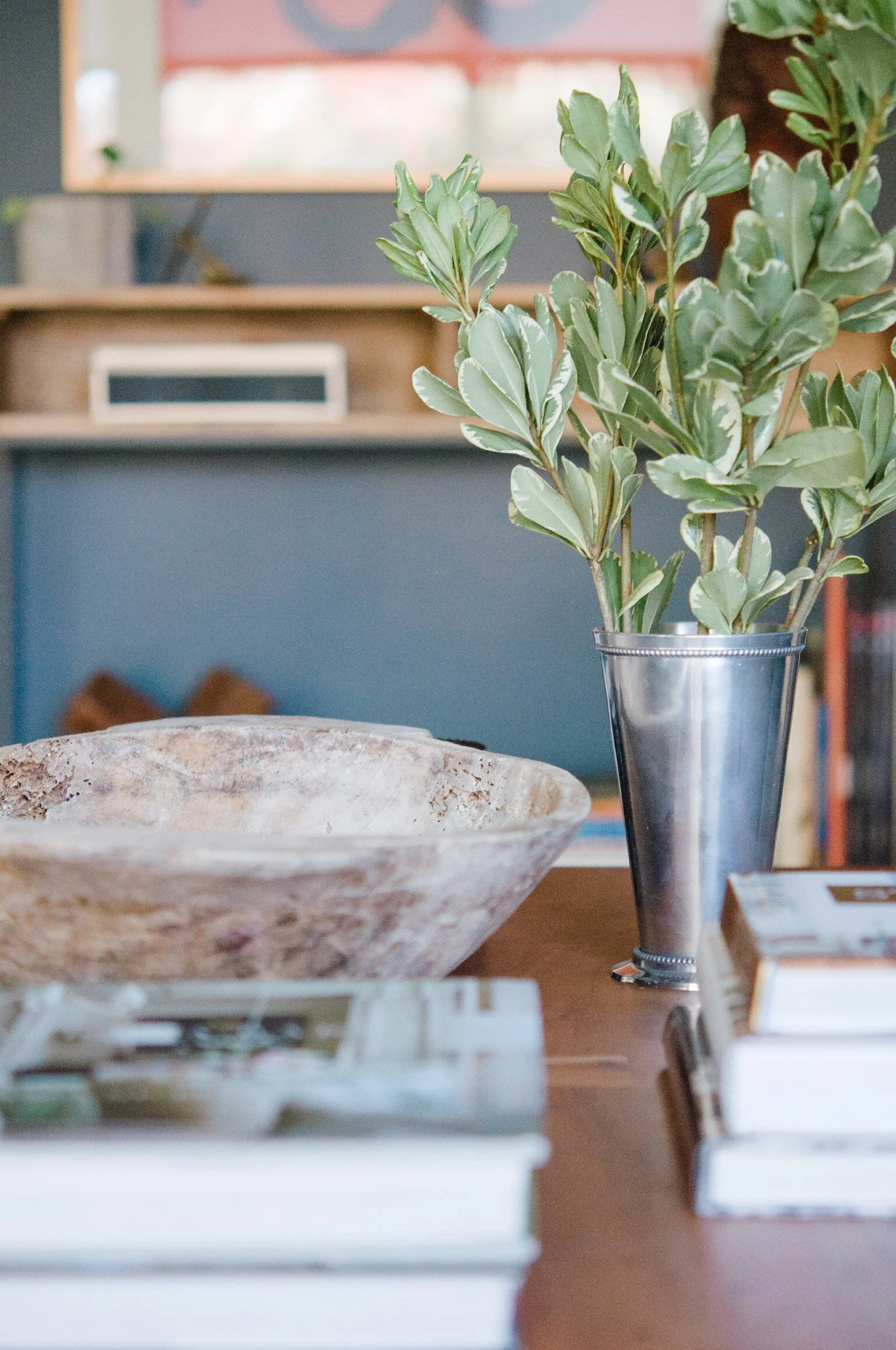 Every object (with the exception of a couple storage containers used in the lower portion) was something that the homeowners already had. In order to get everything in place, I asked them to just pull out everything they had that they might want to store or display. Then I came by and shelf by shelf, organized it and displayed the items until they were just so. I really like that we were able to use everyday objects, like bowls and mugs, to give it interest. It makes it both functional and beautiful. I also like that everything in this shelving unit has meaning and a story which brings an energy that you just can’t replicate with pieces purchased just for styling.