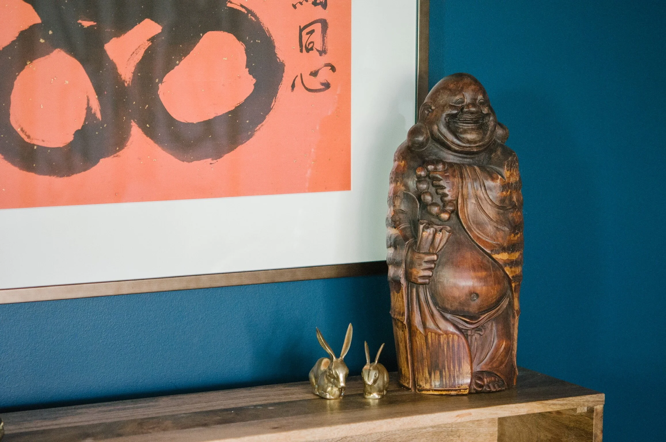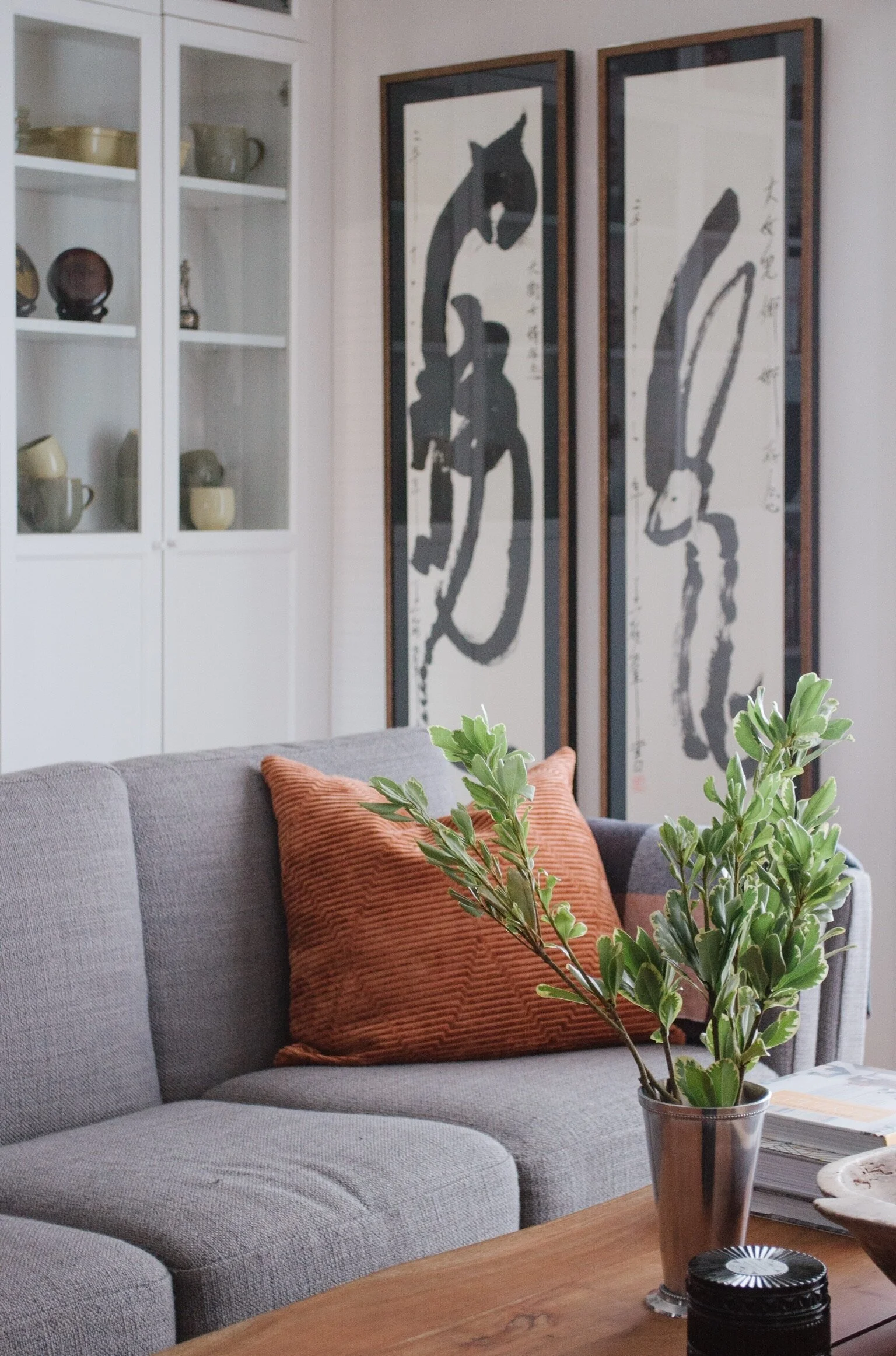 The other art pieces that we used are two additional calligraphy works that the homeowners already had but were originally on traditional scrolls. They weren’t being displayed because of the delicate nature (and length) of the scrolls. I had the idea to remove them from the scrolls and have them framed. The experts at Mill Creek Framing did an amazing job at ensuring the transition from scroll to frame went smoothly! They are quite possibly my favourite aspect of this space.