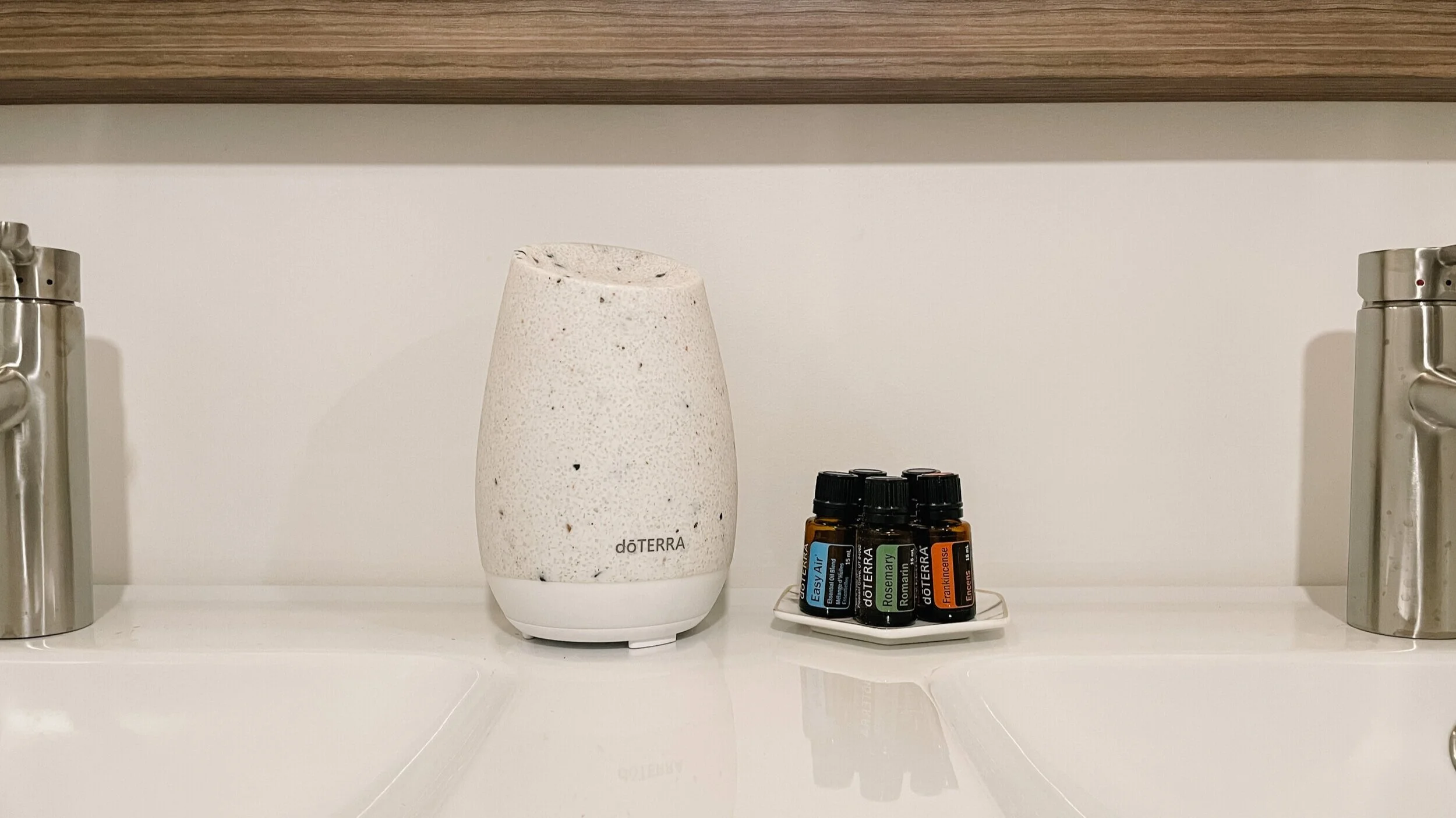 Filling your washroom space with essential oils through diffusing is another great way to boost your mood and energy in the mornings. If you’re wanting to create some mental clarity, you can blend the eucalyptus with some rosemary. If you want to feel more lively and awake, try Lime and Easy Air together. Or for a bit of both, Lime and Rosemary also go well together as a blend. One of my favourite Diffusers is the Roam diffuser because you can charge it and then move it into whatever room you like. It’s also made from a beautiful
