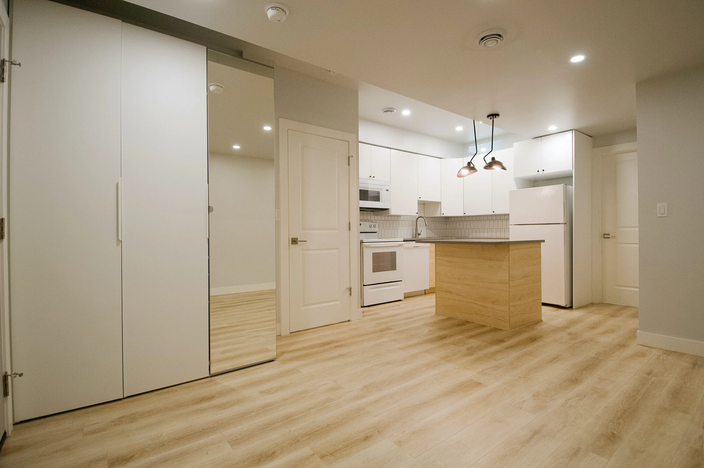 This basement suite is in a new infill duplex and we got really lucky in terms of timing. The City of Edmonton had only approved legal secondary suites to be built in duplex residences a few weeks prior to our development permit application! The homeowners originally brought me on to consult on their build in terms of layout and finishing. Once it was built and the builder handed over the keys, we got right to work designing the basement suite.
