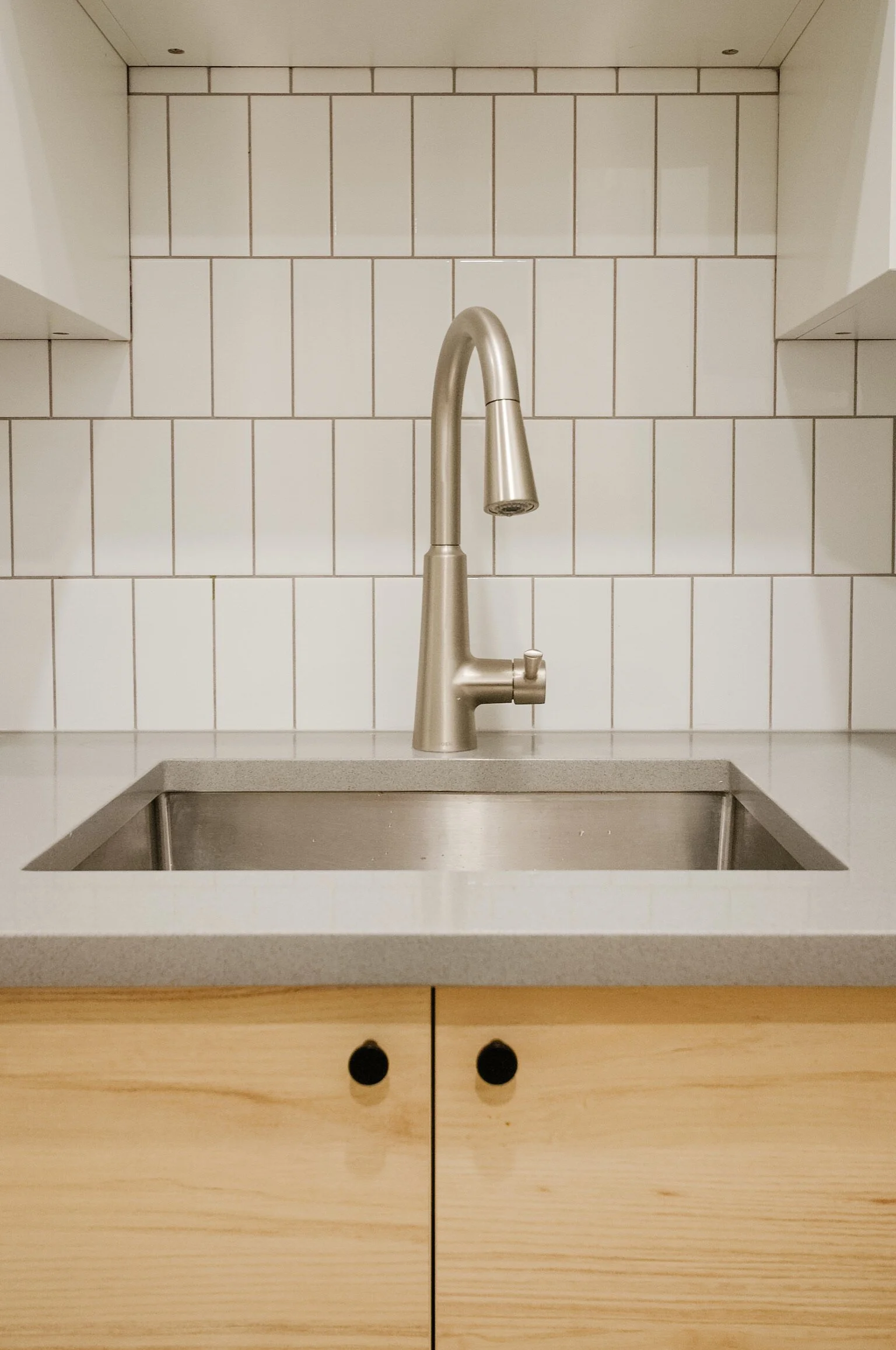 Because there is a dishwasher, we were able to go with a single bowl sink, and leverage the added space for storage and counter space. We used IKEA cabinets to reduce costs, while also providing great functionality with hidden drawers and pullouts within the cabinets.