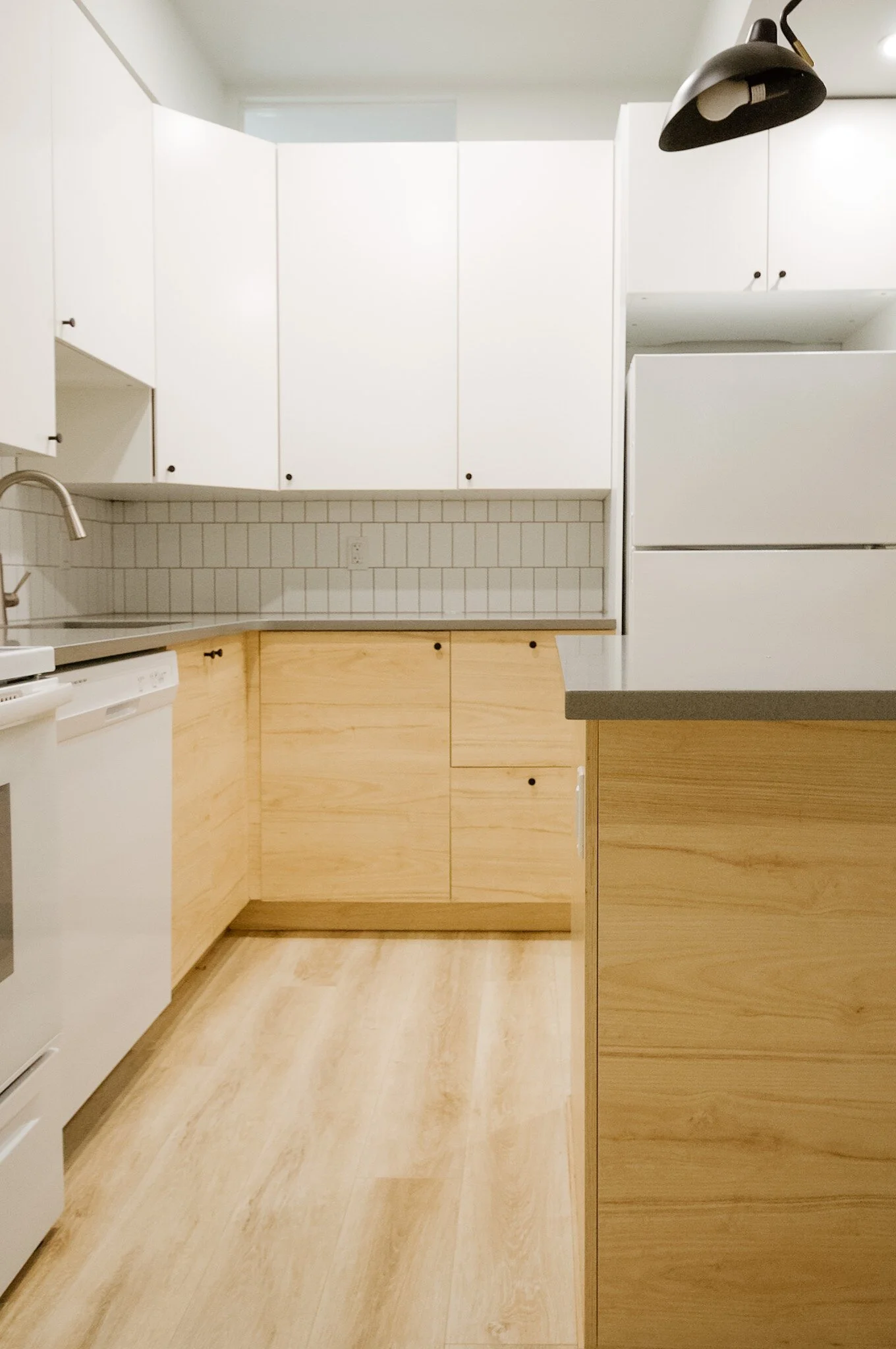 I also like to include a dishwasher in the suites - another great selling feature when it comes time to list. Other elements that really give this kitchen a lift are the addition of an island, and the quartz countertops. Read more on why I almost always specify quartz for rentals.