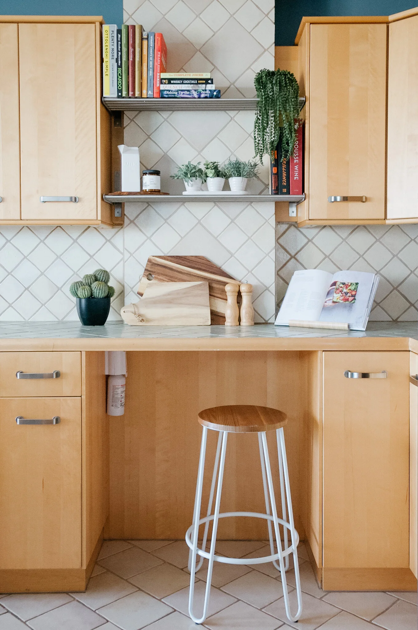 As much as we can plan in advance, staging often depends on what happens to be available. I feel like we lucked out with a few pieces - like the sofa and the rug - which truly tied so many of the elements together. The unique colours of the tile in the kitchen set the tone for this space. When you have a unique element that may not be particularly on-trend, it’s important to make it feel intentional with the rest of the decor.