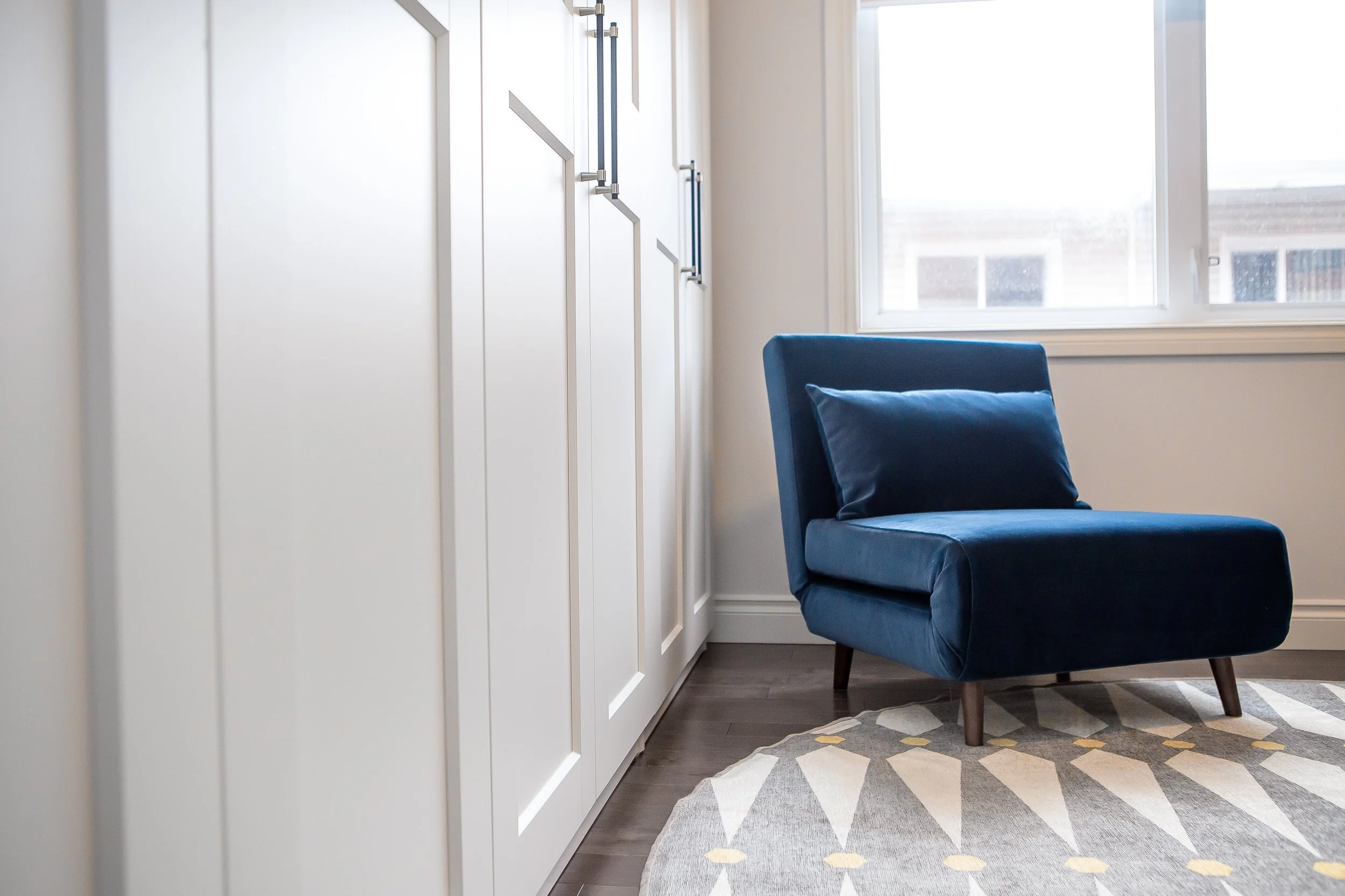 For the guest room / work office, our priorities were around adding more storage, providing a spot for a guest to sleep, and ensuring the large work desk had a spot too.