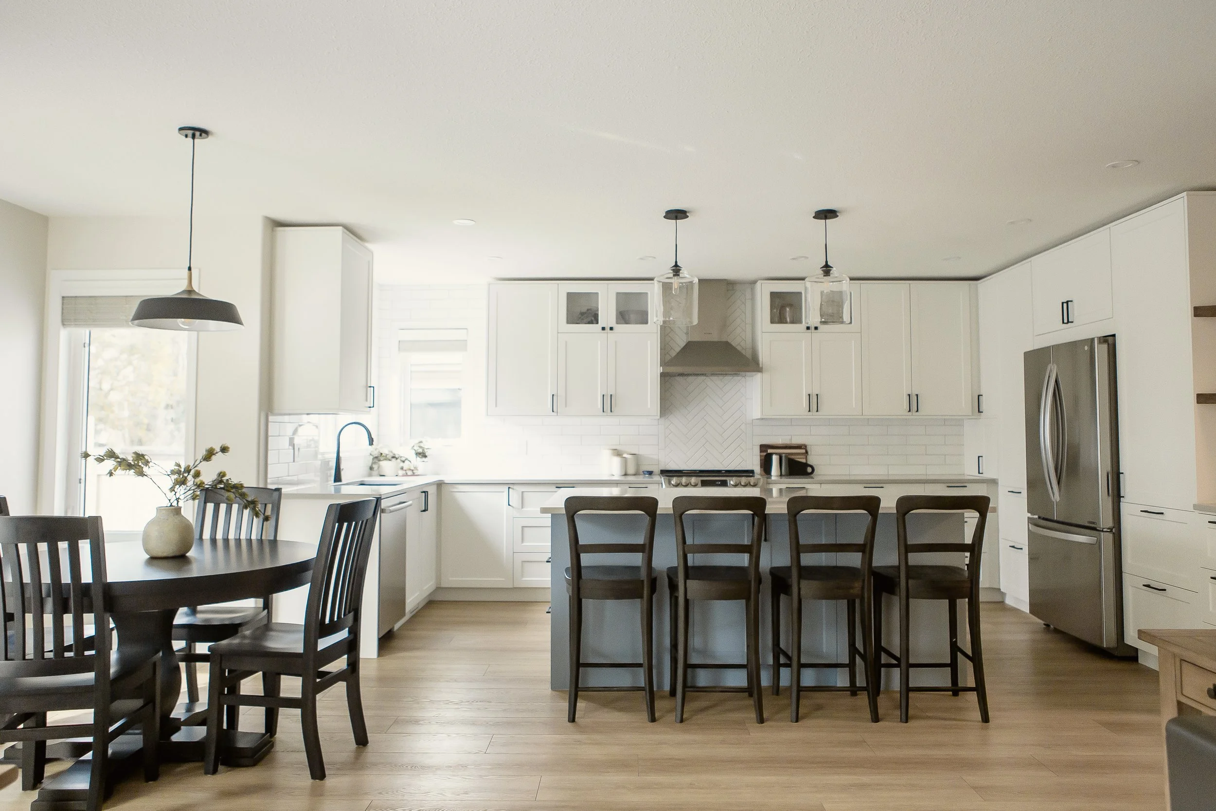 One of my favourite parts of having had a different career before moving into interior design is that I frequently get to design spaces for my colleagues in that previous career. This kitchen renovation project in Sherwood Park was one of those situations and while there is always added pressure when you’re working for someone you already know, it’s also incredibly fulfilling to bring a space to life for them. In addition to the kitchen renovation, we also updated the flooring throughout the main and second floors of the home, installed new railings on the stairs, renovated the half bath and updated the main floor lighting fixtures. This one was a bit of a journey so let’s jump in!