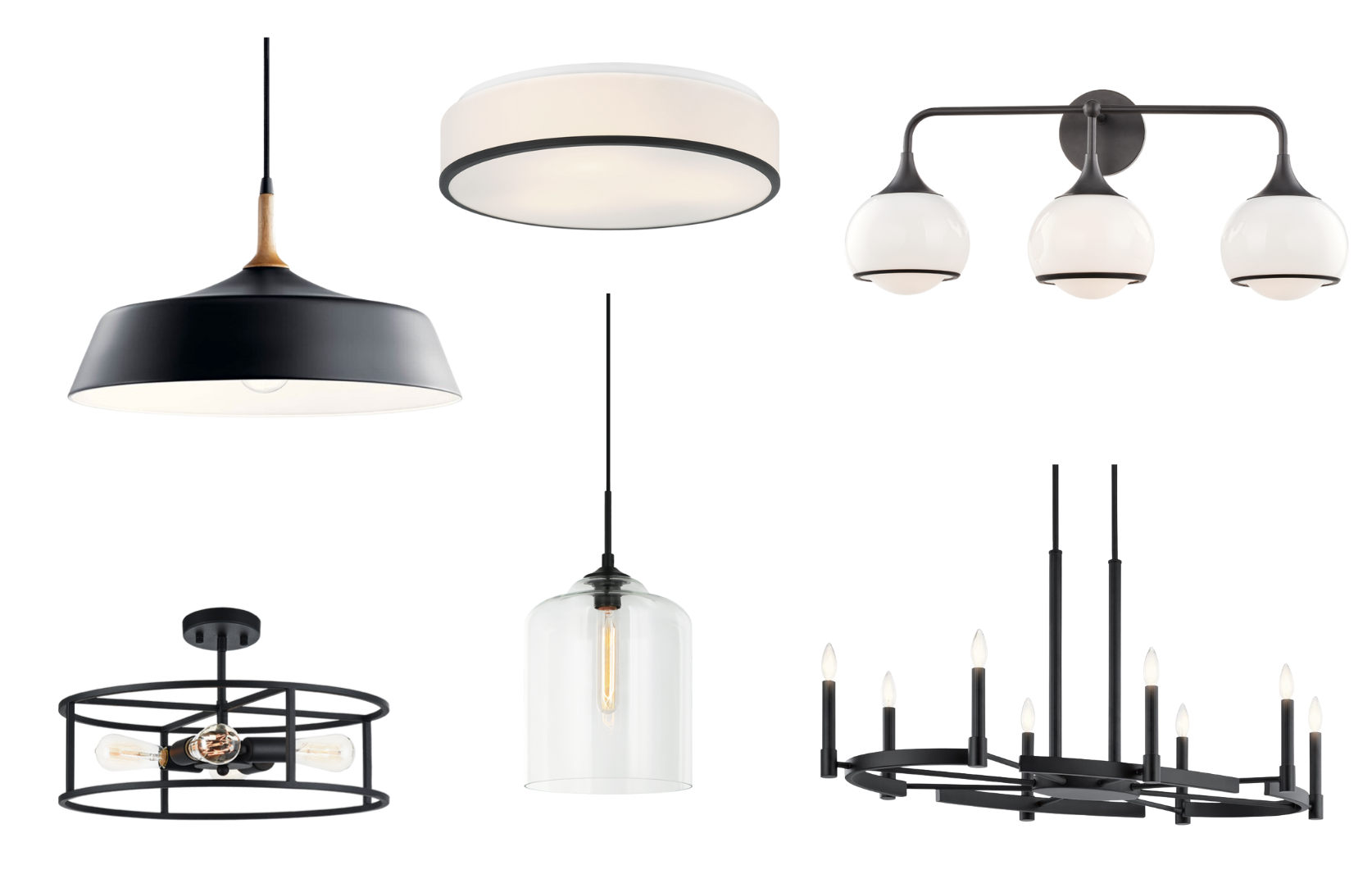 For lighting, we mixed and matched a few options throughout the space so that it felt cohesive yet collected. Side note: did you know that we offer an e-design service to put together lighting packages just like this for your home? You can learn more here.