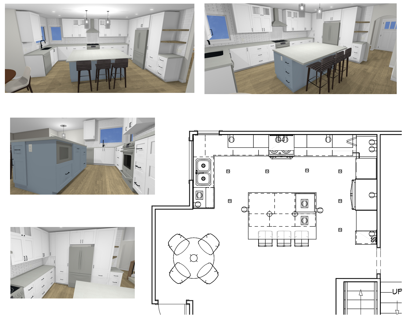 When our clients first reached out they were considering making updates to the kitchen but weren’t sure if it was better to just do a cosmetic refresh or to take on a renovation. We started by providing an analysis for them that included an approximate budget for each option and some initial designs that they could consider if the renovation was the way to go. As you’re about to see, they chose renovation. So we were brought back in to finalize the design for the kitchen, plus a few other areas, and then assist through implementation.