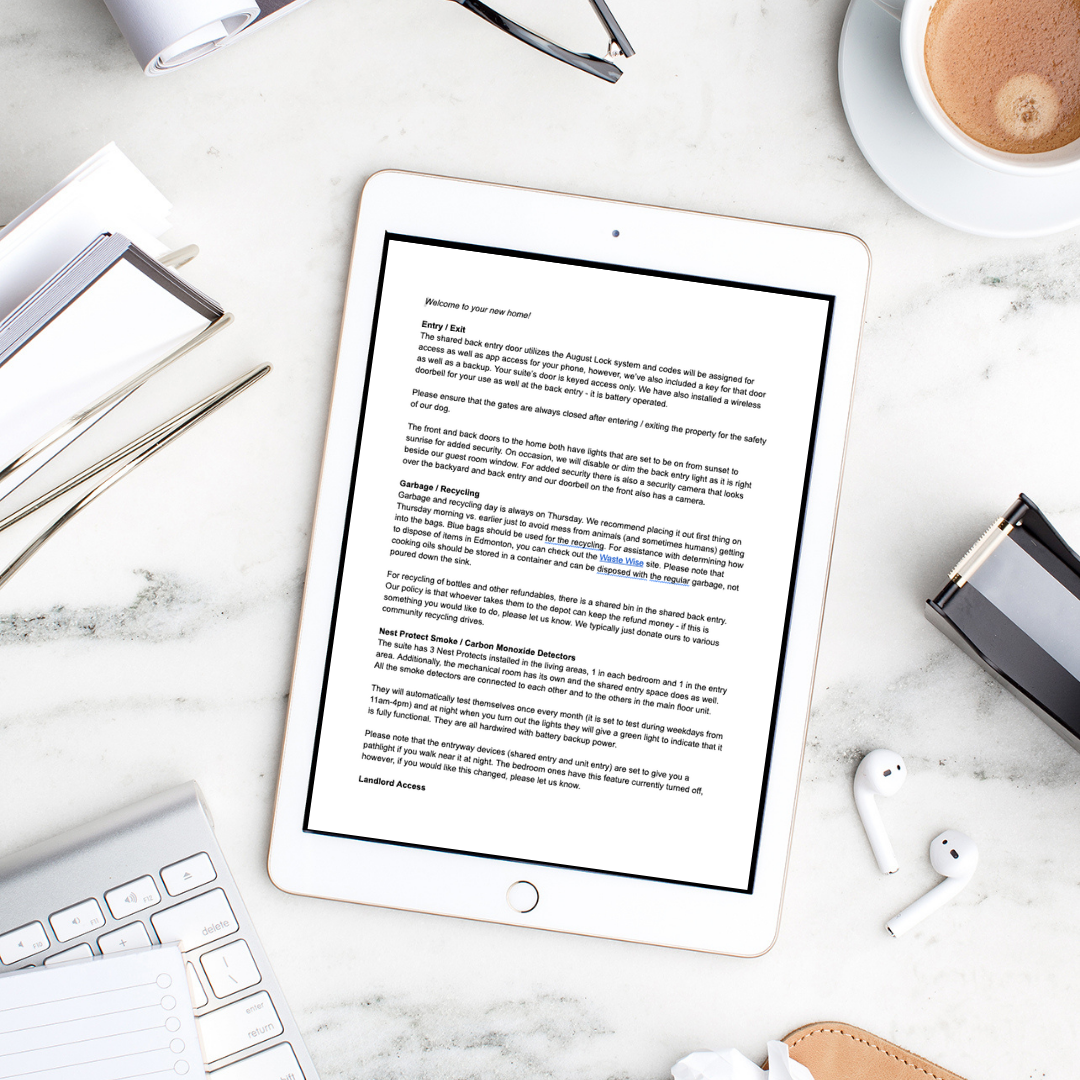 When you’re moving into a new home, there are so many small details that you need to know. What day does the garbage go out, how do I, how do I program the thermostat, what sort of lightbulbs do the fixtures take, how do I use this feature on the laundry, etc. How are you introducing your tenants to their new home?