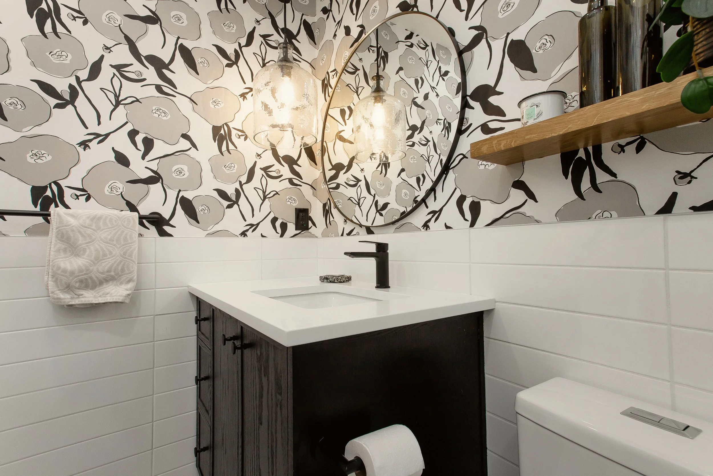 As always, we’re so excited to share another one of our completed projects! This time we’re featuring two bathroom renovations in Sherwood Park that we designed. Our client was wanting to really inject her personality into these two rooms while ensuring they were functional for herself, her neurodivergent son and her guests. The two bathrooms have very different looks, but a few common features that help to tie them together.