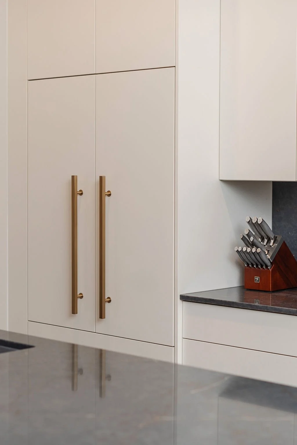 We also utilized counter-depth and panel-front appliances wherever we could to maintain a sleek, cohesive design.