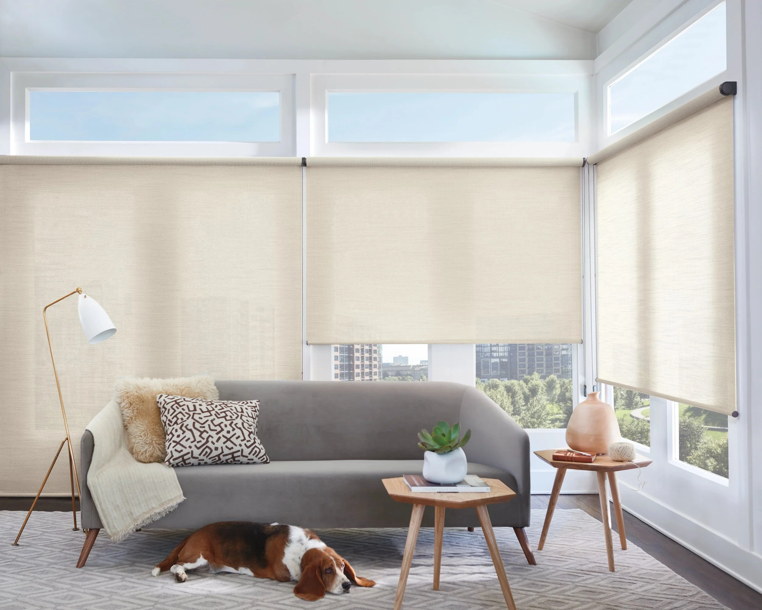 Simple, clean and cost effective, we specify Designer Roller Shades a lot both on their own and in conjunction with our other top sellers, Silhouette® and Duette®. Because of their simplicity, we can easily use them on the "lesser” windows of a home while utilizing the more expensive options on the prominant windows. Not sure what I mean, well a typical situation has us using the Silhouette® line on the windows of the common areas of the home that our clients spend the most time in, like living rooms and kitchens. But then we’ll use the Roller Shades in the private areas like bedrooms, bathrooms, basements, etc. to help keep the overall price of the window coverings lower.