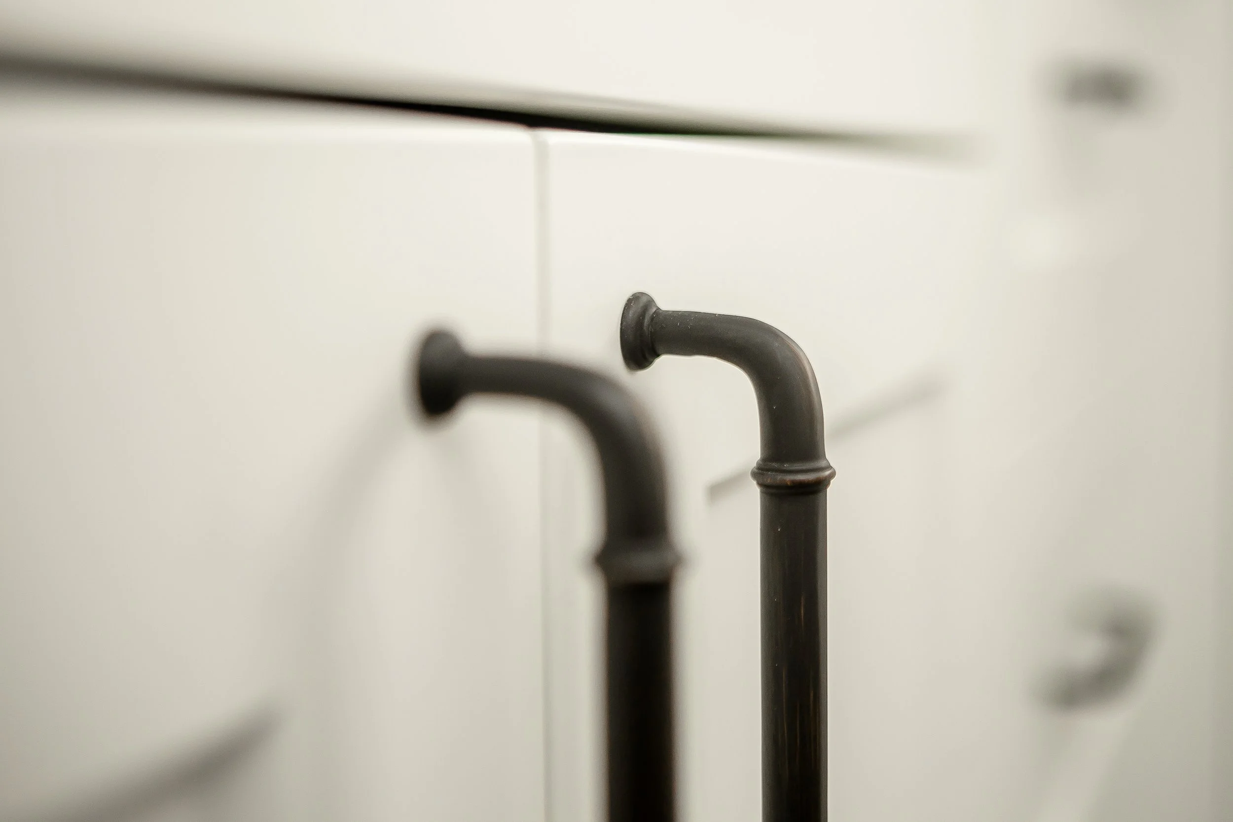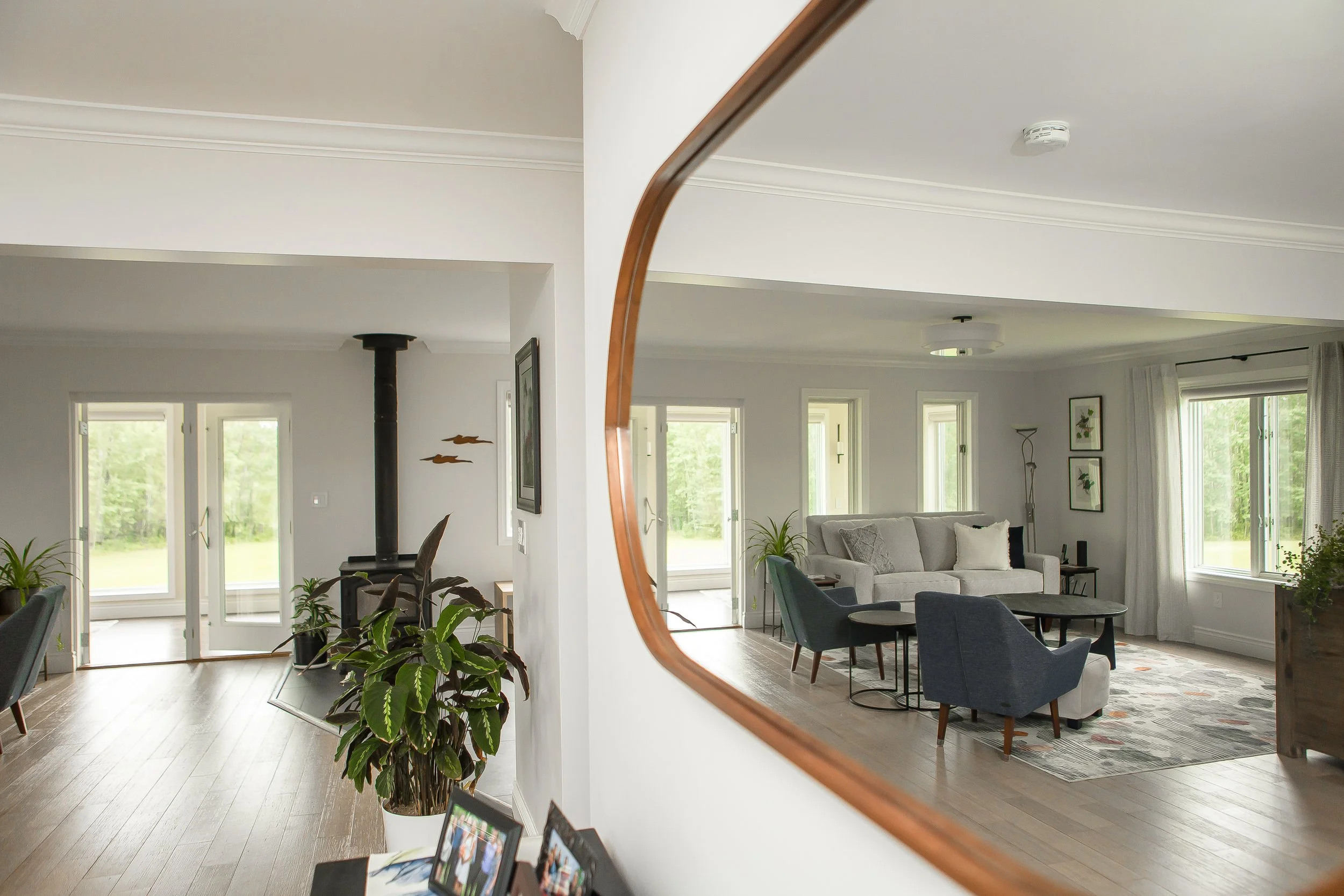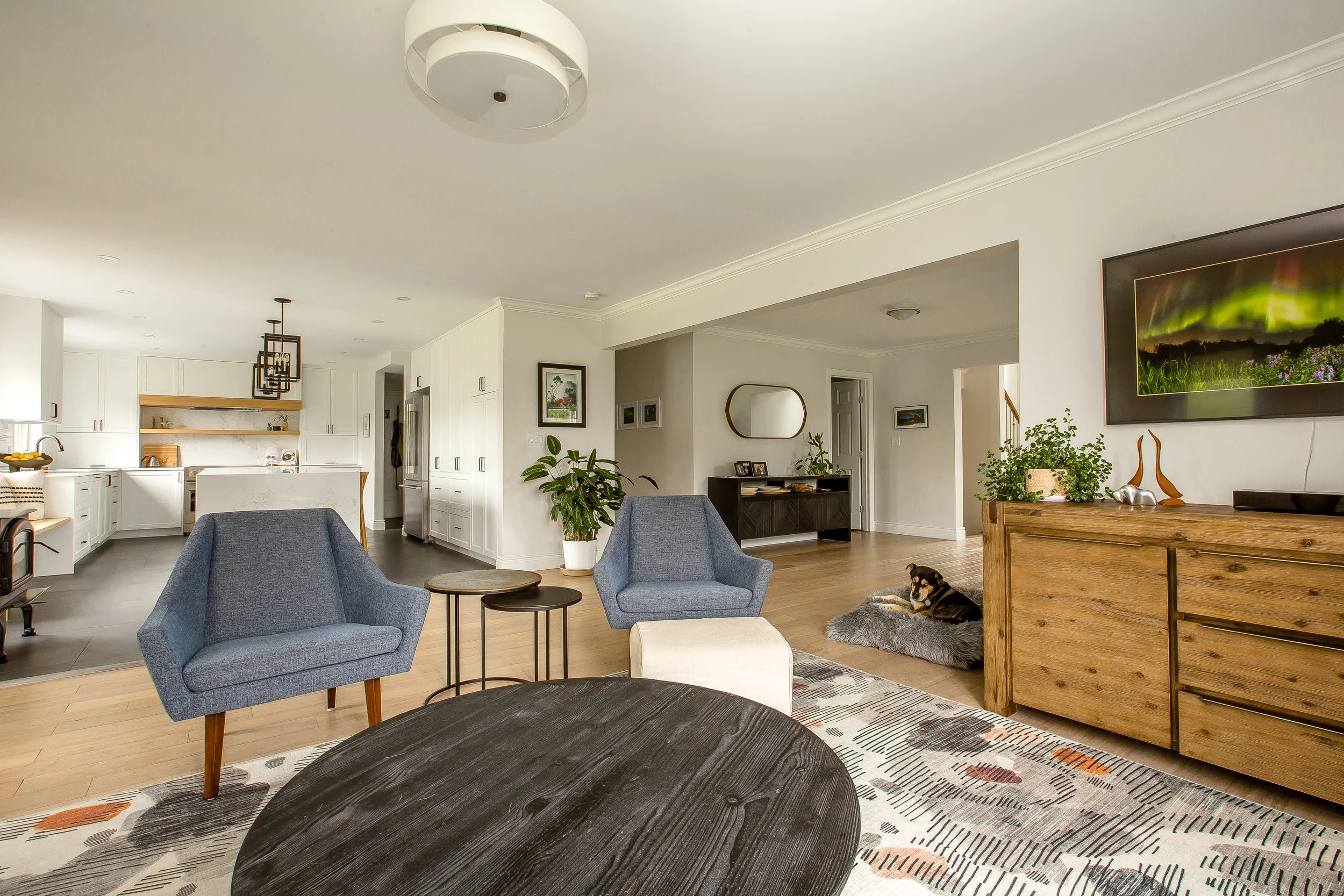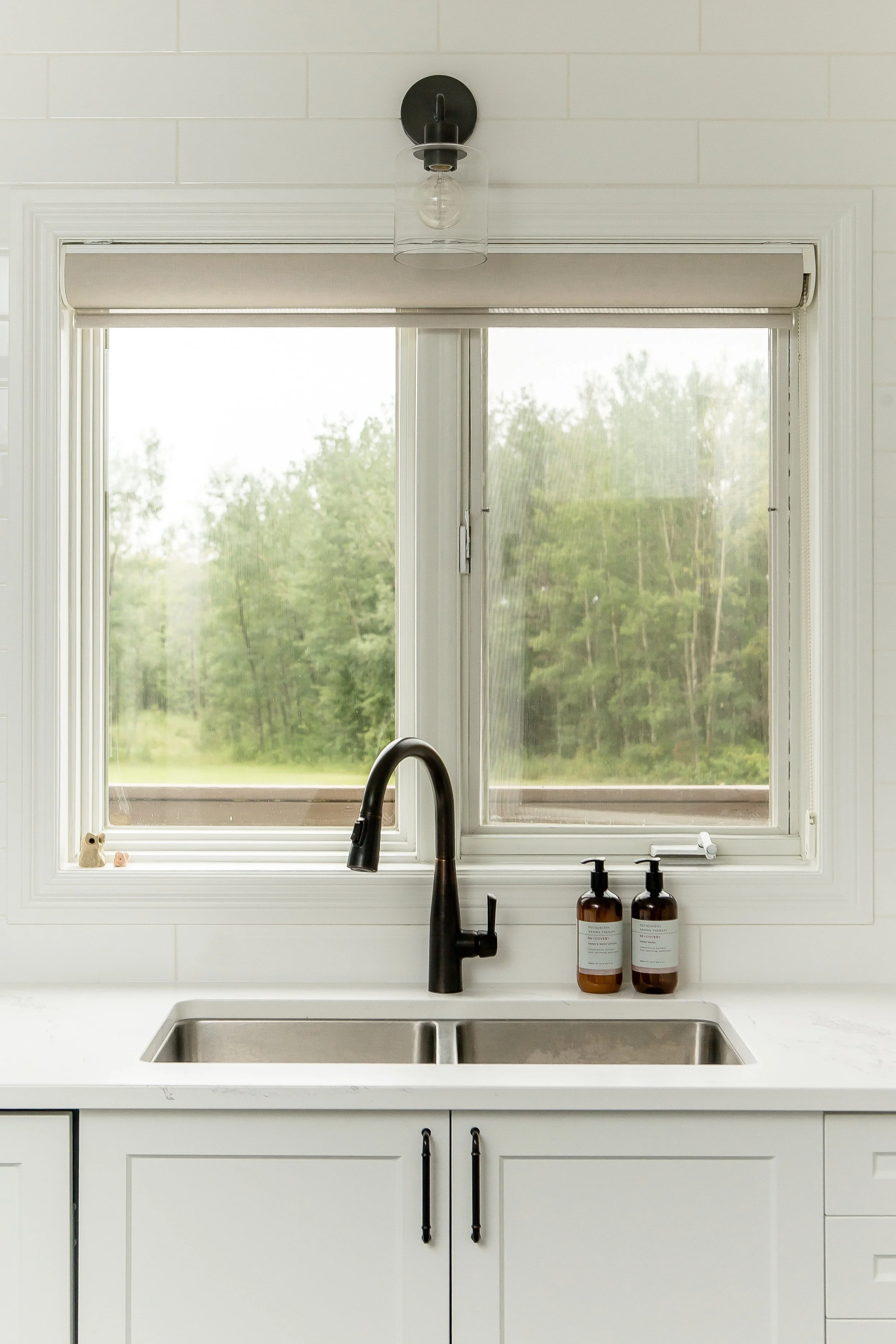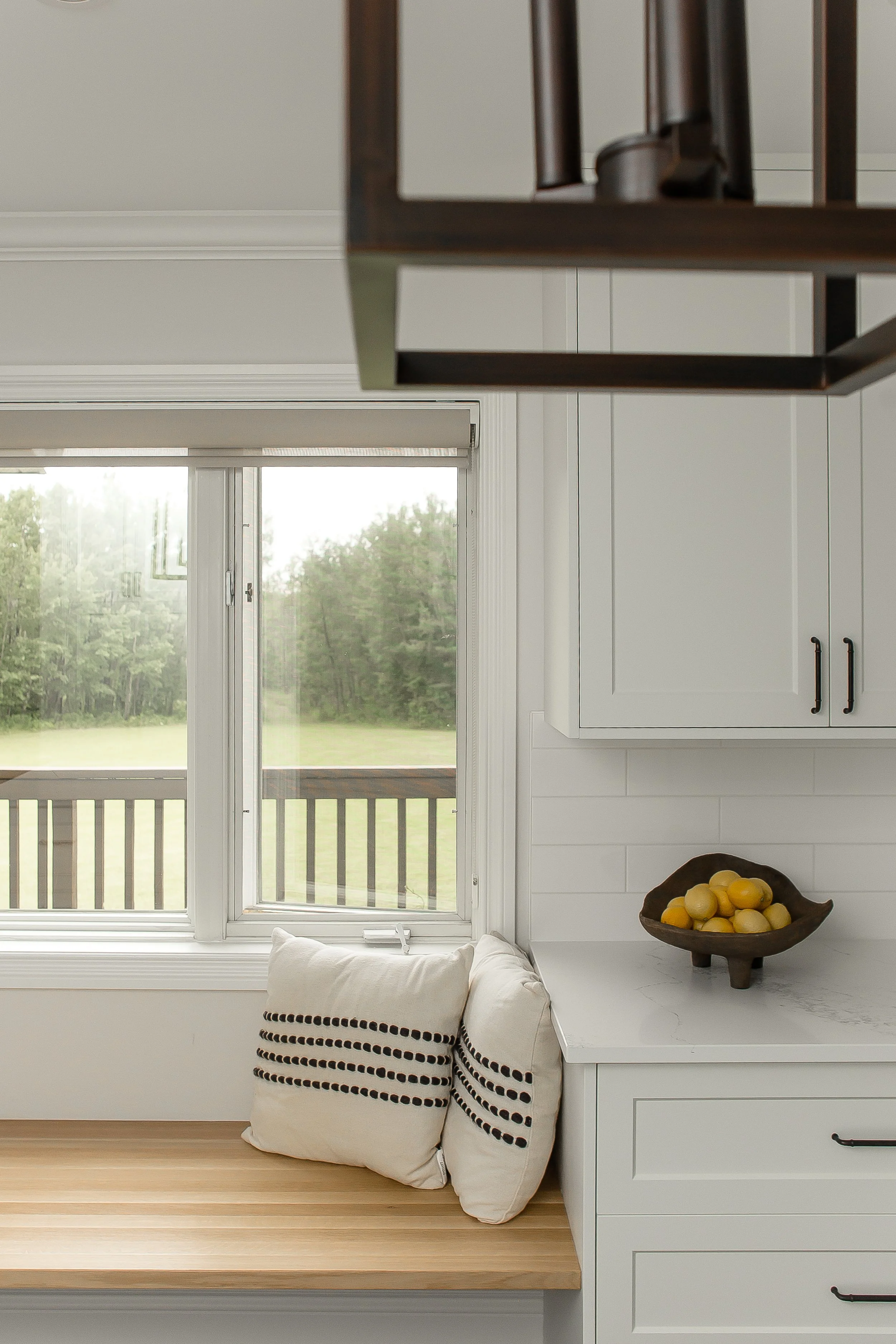 In many ways, this project was 3 years in the making. I met our clients back in July of 2020, when they were preparing to sell their house in Edmonton. Their realtor, who we regularly work with, brought us in to help prep the home for sale, provide a paint colour consultation and finish it off with some light staging. The home sold quickly (of course!) and the clients then asked me to come out to their new home in Strathcona County to help them figure out the purpose for each space, where to put what, recommendations for new pieces and choosing paint colours. Then, after completing some more pressing repairs, I was back out for a visit to start a redesign of the main floor rooms, as well as a design assessment for the possibility of doing a full renovation of the kitchen and ensuite bathroom. As you’re about to see, we went ahead with that renovation and the redesign, bringing much needed functionality and our client’s personalities to these key spaces in their home.