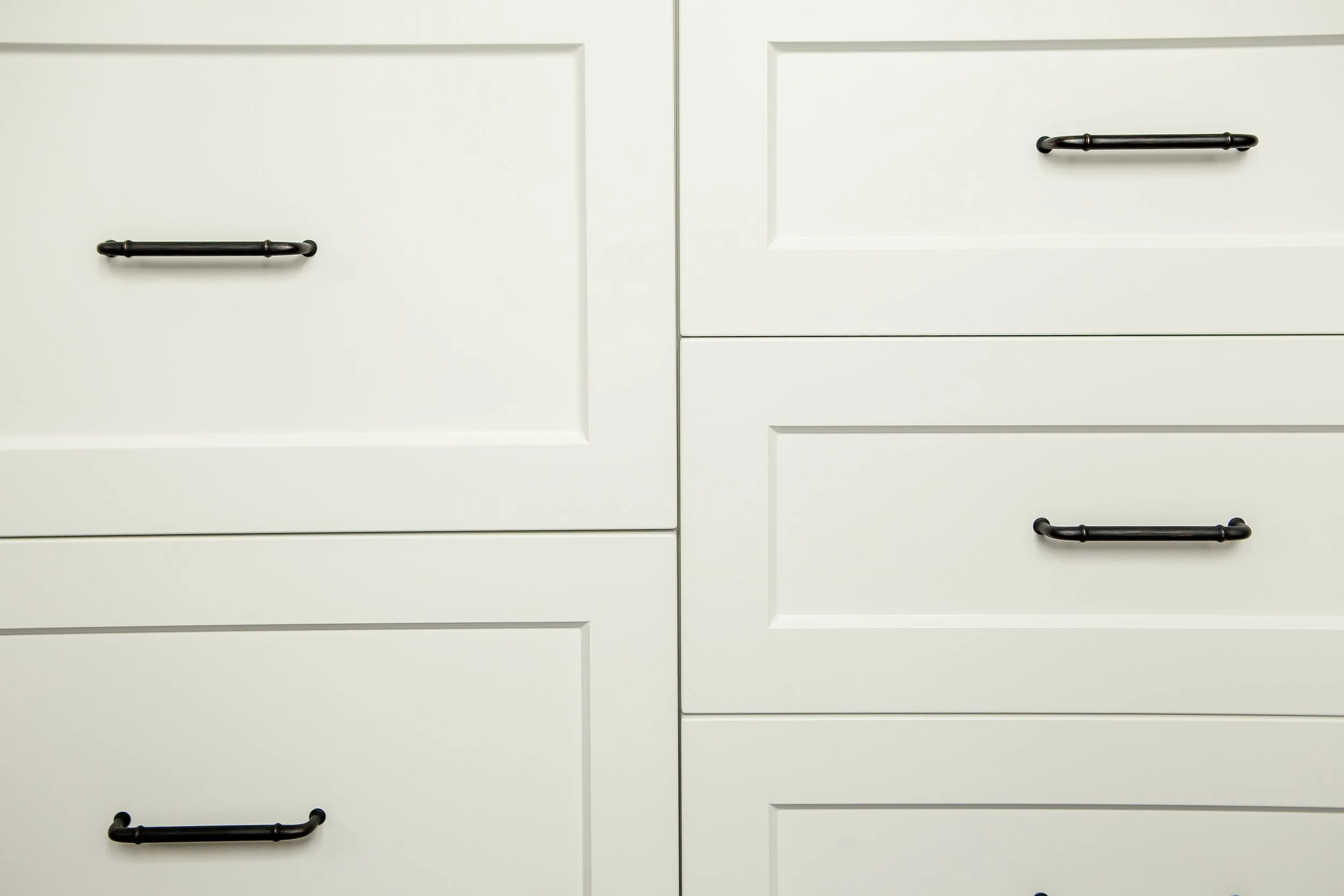The double appliance garages serve an extra purpose beyond pure storage. They are actually hers and his appliance garages with separate toasters in each as one of our client’s has Celiac Disease and the other loves making homemade, gluten filled bread - so the toast has to be separated!