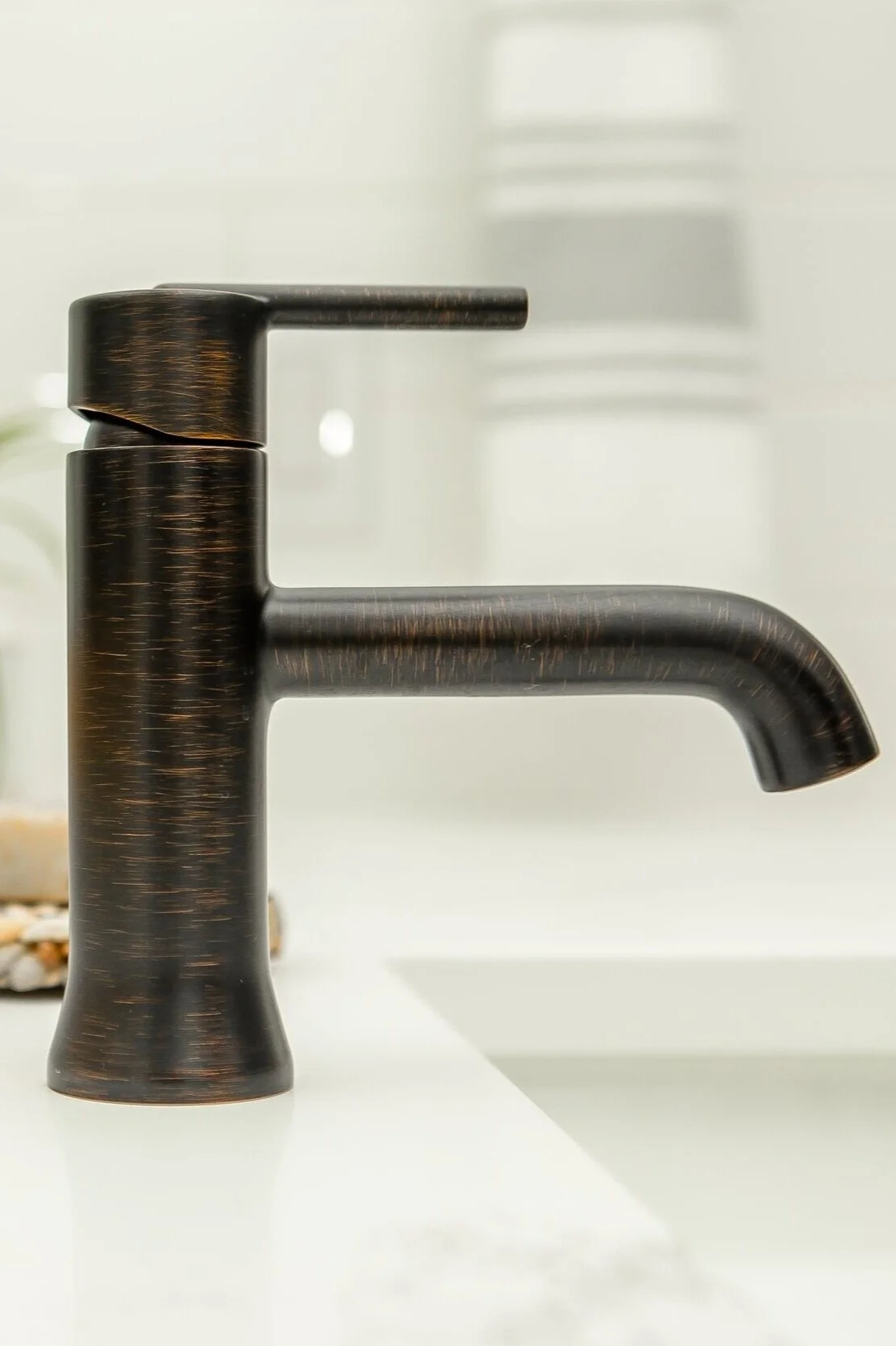 We continued the use of the bronze metal in the faucet and handles in the kitchen as well, again paired with the stainless steel of the appliances and sink and the black of the light fixtures.