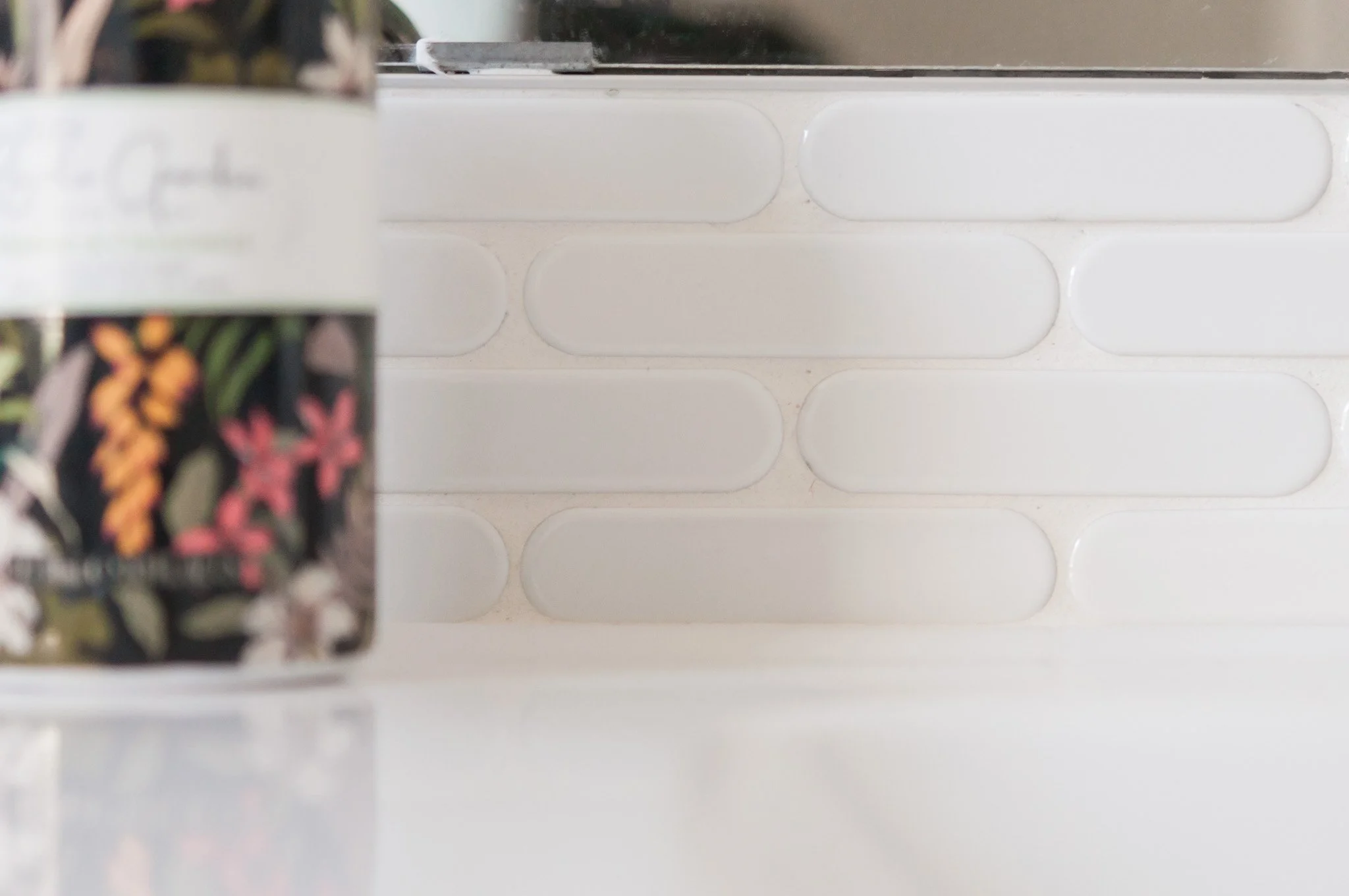 We also replaced the previous backsplash behind the sinks with the pill tile to just further tie in the new portion of the bathroom with the old.