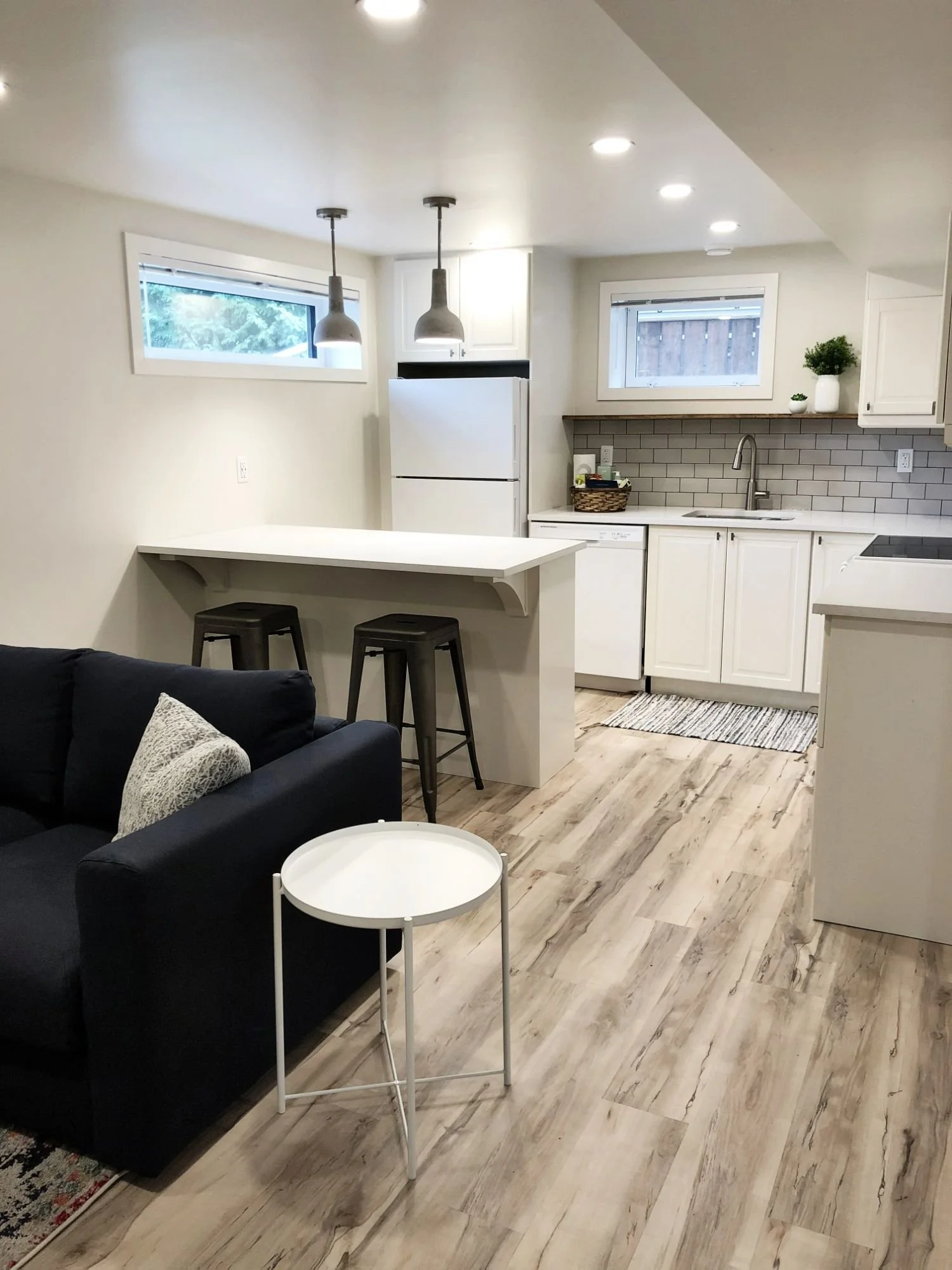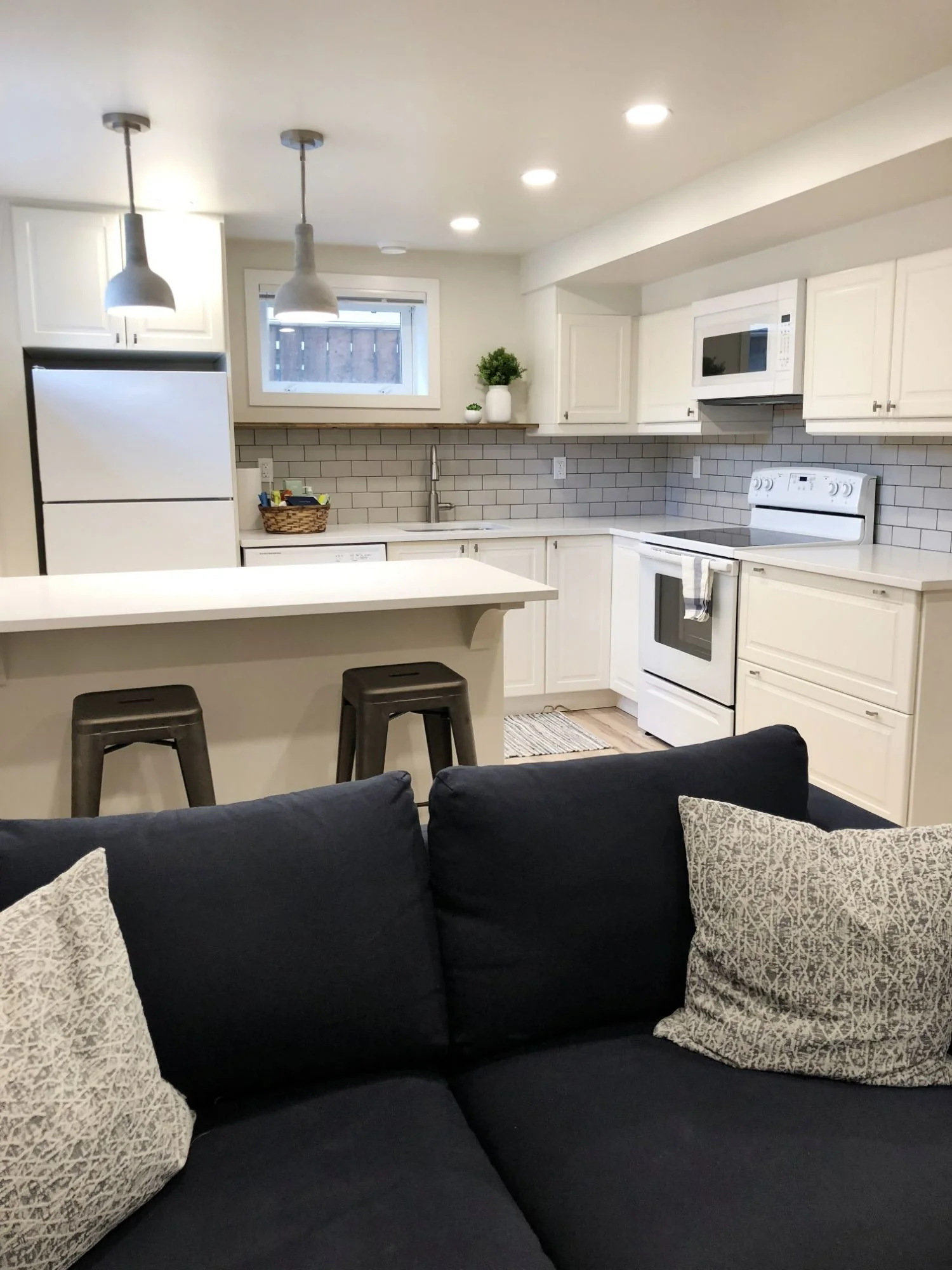 This 1950s semi-bungalow in Allendale, Edmonton, underwent a full renovation, including gutting the basement to create a bright and modern 2-bed, 1-bath secondary / income suite. Read more here.